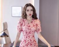 联系:黄女士电话:13985468512雪纺碎花连衣裙女夏小个子短裙法式甜美初恋裙气质收腰显瘦鱼尾裙 颜色分类: 红色、尺码: S